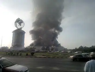 ![]() Protesters set Sohar's Lulu Hypermarket ablaze on 28 February 2011. | |