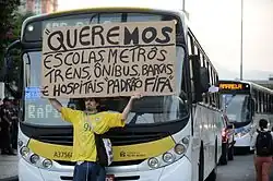 The protests were primarily concerned with the spending of billions of reais of public money on stadiums for the World Cup.[1]
