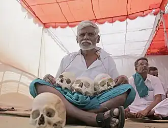 - ↑ Scroll Staff. "Protesting Tamil Nadu farmers eat human excreta to draw Centre's attention". Scroll.in. Retrieved 14 January 2021.