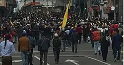 The 2019 Ecuadorian protests were a series of protests and riots against austerity measures including the cancellation of fuel subsidies, adopted by President of Ecuador Lenín Moreno and his administration.[1][3] Organized protests ceased after indigenous groups and the Ecuadorian government reached a deal to reverse the austerity measures, beginning a collaboration on how to combat overspending and public debt.[8]
