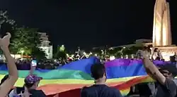 On 25 July, an LGBT activist group Seri Thoey (lit. Free Thoey; parody to the Seri Thai – Free Thai Movement), demonstrated at the Democracy Monument calling for legalisation of same-sex marriage in addition to the three demands.[98]
