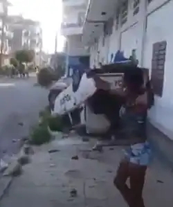 Cuba's Ministry of Interior confirmed one dead and reported several injuries to citizens, including some officers.[119][120] The web page CiberCuba released a video where allegedly a black beret-wearing group, the Cuban police, break into the house of a demonstrator and fire at him immediately in front of his wife and children, detaining him afterwards.[121] According to the organization of lawyers Cubalex, over 200 people have been detained and many remain in detention as of 15 July.[122][123] Deputy Minister of the Interior Jesús Manuel Burón Tabit questioned decision-making within the ministry and the Security Council as well as what he called the excessive use of police force to repress the demonstrations;[124] the Cuban government denied that he resigned after his statements.[125]