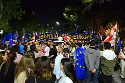 Following the EU's decision to set twelve conditions for Georgia in order to obtain the candidate status, a series of protests was organized in June–July 2022 by the non-governmental organization (NGO) Shame Movement.[36] The organizers blamed the Georgian government for the failure to secure EU candidate status for the country and called for its resignation, to be replaced with a technical interim government of "national accord" to implement the conditions set by the EU in order to get candidate status.[37] The opposition welcomed this proposal, while Speaker of Parliament Shalva Papuashvili criticised the demand, saying "democracy does not work this way".[38] He elaborated that the formation of a technical government was "nothing but a desire to seize power by bypassing democratic procedures".[39]