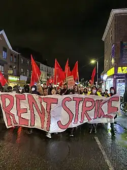 - ↑ ""Rent hike, rent strike": UoM Rent Strike protestors take to Oxford Road - The Mancunion". mancunion.com. 2 March 2023. Retrieved 24 March 2023.