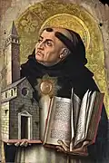 Thomas Aquinas interprets the biblical phrase "You should love your neighbour as yourself"[68] as meaning that love for ourselves is the exemplar of love for others.[69] Considering that "the love with which a man loves himself is the form and root of friendship", he quotes Aristotle that "the origin of friendly relations with others lies in our relations to ourselves",.[70] Aquinas concluded that though we are not bound to love others more than ourselves, we naturally seek the common good, the good of the whole, more than any private good, the good of a part. However, he thought we should love God more than ourselves and our neighbours, and more than our bodily life—since the ultimate purpose of loving our neighbour is to share in eternal beatitude: a more desirable thing than bodily well-being. In coining the word "altruism", as stated above, Comte was probably opposing this Thomistic doctrine, which is present in some theological schools within Catholicism. The aim and focus of Christian life is a life that glorifies God, while obeying Christ's command to treat others equally, caring for them and understanding that eternity in heaven is what Jesus' Resurrection at Calvary was all about.