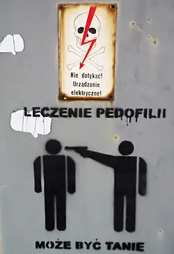 Anti-pedophile activism encompasses social actions against pedophiles. It also includes acts of anti-pedophile citizen vigilantism conducted by vigilante groups,[1][2] some of which have operated alongside government agencies in countries such as the United States, Canada and the United Kingdom.