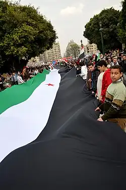 The world watched the events of the Arab Spring unfold, "gripped by the narrative of a young generation peacefully rising up against oppressive authoritarianism to secure a more democratic political system and a brighter economic future".[21] The Arab Spring is widely believed to have been instigated by dissatisfaction, particularly of youth and unions, with the rule of local governments, though some have speculated that wide gaps in income levels and pressures caused by the Great Recession may have had a hand as well.[34] Some activists had taken part in programs sponsored by the US-funded National Endowment for Democracy, but the US government claimed that they did not initiate the uprisings.[35]