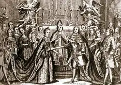 Arranged marriages across feudal lords, city states and kingdoms, as a means of establishing political alliances, trade and peace were common in human history.[49][65][66] When a king married his son to a neighboring state's daughter, it indicated an alliance among equals, and signaled the former's state superiority. For example, the fourth daughter of Maria Theresa, Archduchess of Austria and Queen of Hungary, Marie Antoinette, married the dauphin (crown prince) of France, who would become King Louis XVI.[64]