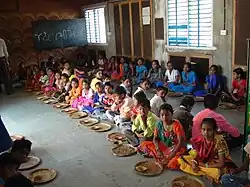Ambedkar was born into a Mahar (Dalit) caste, who were treated as untouchables and subjected to socio-economic discrimination.[12] Although they attended school, Ambedkar and other untouchable children were segregated and given little attention or help by teachers. They were not allowed to sit inside the class. When they needed to drink water, someone from a higher caste had to pour that water from a height as they were not allowed to touch either the water or the vessel that contained it. This task was usually performed for the young Ambedkar by the school peon, and if the peon was not available then he had to go without water; he described the situation later in his writings as "No peon, No Water".[13] He was required to sit on a gunny sack which he had to take home with him.[14]