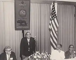 Ambedkar was survived by his second wife Savita Ambedkar (known as Maisaheb Ambedkar), who died in 2003,[106] and his son Yashwant Ambedkar (known as Bhaiyasaheb Ambedkar), who died in 1977.[107] Savita and Yashwant carried on the socio-religious movement started by B. R. Ambedkar. Yashwant served as the 2nd President of the Buddhist Society of India (1957–1977) and a member of the Maharashtra Legislative Council (1960–1966).[108][109] Ambedkar's elder grandson, Prakash Yashwant Ambedkar, is the chief-adviser of the Buddhist Society of India,[110] leads the Vanchit Bahujan Aghadi[111][112] and has served in both houses of the Indian Parliament.[112] Ambedkar's younger grandson, Anandraj Ambedkar leads the Republican Sena (tran: The "Republican Army").[113]