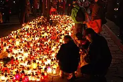Placing burning grave candles on the cemetery to commemorate the dead is a very common tradition in Catholic nations, for example, Poland. It is mostly practised on All Souls' Day. The traditional grave candles are called znicz in Polish.[46] A similar practice of grave candles is also used in Eastern Orthodox Christian nations, as well as the Lutheran Christian Nordic countries.