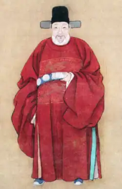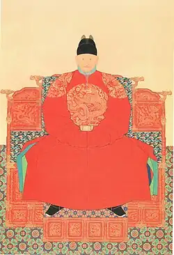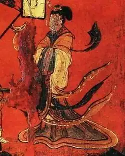 Cizang (慈藏), a Silla monk, studied Vinaya in China and when he returned to Silla, he promoted Dharma in 643.[9] Cizang also contributed to the change of Silla's imperial or official dress for the customs of the Tang, which also marked the beginning of Chinese clothing rituals in Silla.[9] During the reign of Queen Jindeok, Kim Chunchu adopted the Tang dynasty dress and encouraged the Silla kingdom to adopt Chinese administrative practices.[10] The danryeong was thus introduced from the Tang dynasty by Kim Chunchu in the second year of Queen Jingdeok's rule.[11]