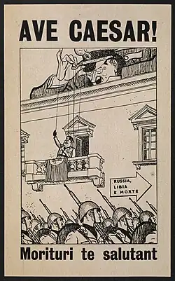 Several Church Fathers interpreted Jesus' teachings as advocating nonviolence.[24] For example, Justin Martyr writes, "we who formerly used to murder one another do not only now refrain from making war upon our enemies, but also, that we may not lie nor deceive our examiners, willingly die confessing Christ,"[25] and, "we who were filled with war, and mutual slaughter, and every wickedness, have each through the whole earth changed our warlike weapons,—our swords into ploughshares, and our spears into implements of tillage,—and we cultivate piety...".[26] Tatian writes that, "I am not anxious to be rich; I decline military command [...] Die to the world, repudiating the madness that is in it";[27] and Aristides writes that "Through love towards their oppressors, they persuade them to become Christians."[28] Hippolytus of Rome went so far as to deny soldiers baptism: "A soldier of the civil authority must be taught not to kill men and to refuse to do so if he is commanded, and to refuse to take an oath. If he is unwilling to comply, he must be rejected for baptism."[29] Tertullian formed an early argument against statolatry, "There is no agreement between the divine and the human sacrament, the standard of Christ and the standard of the devil, the camp of light and the camp of darkness. One soul cannot be due to two masters—God and Cæsar," also writing, "the People warred: if it pleases you to sport with the subject. But how will a Christian man war, nay, how will he serve even in peace, without a sword, which the Lord has taken away?"[30] Origen, whose father Leonidus was martyred during the persecution of the Roman emperor Septimius Severus in the year AD 202, writes, "Jews [...] were permitted to take up arms in defence of the members of their families, and to slay their enemies, the Christian Lawgiver [has] altogether forbidden the putting of men to death [...] He nowhere teaches that it is right for His own disciples to offer violence to any one, however wicked."[31] Further examples include Arnobius, "evil ought not to be requited with evil, that it is better to suffer wrong than to inflict it, that we should rather shed our own blood than stain our hands and our conscience with that of another, an ungrateful world is now for a long period enjoying a benefit from Christ";[32] Archelaus, "many [soldiers] were added to the faith of our Lord Jesus Christ and threw off the belt of military service";[33] Cyprian of Carthage, "The whole world is wet with mutual blood; and murder, which in the case of an individual is admitted to be a crime, is called a virtue when it is committed wholesale";[34] and Lactantius, "For when God forbids us to kill, He not only prohibits us from open violence, which is not even allowed by the public laws, but He warns us against the commission of those things which are esteemed lawful among men. Thus it will be neither lawful for a just man to engage in warfare";[35] while Gregory of Nyssa conveys the spirit of anarchism, "How can a man be master of another's life, if he is not even master of his own? Hence he ought to be poor in spirit, and look at Him who for our sake became poor of His own will; let him consider that we are all equal by nature, and not exalt himself impertinently against his own race."[36]