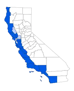 Coastal California, also known as the California Coastline and the Golden Coast, refers to the coastal regions of the U.S. state of California. The term is not primarily geographical as it also describes an area distinguished by cultural, economic and political attributes.