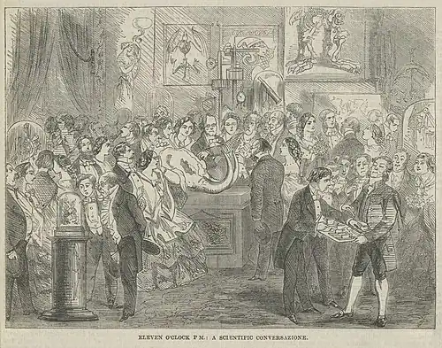 [The] tangible gain to science [from the conversazione is that] inventors and experimentalists … hear [directly] what contemporaries say of their schemes and experiments, and much can be said and done with advantage amid the free talk of a general gathering which could not be permitted in the formal meeting of a scientific society. (Nature, 5 May 1870.[10])