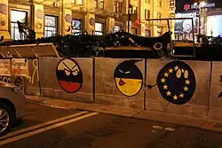 The simplicity of Countryballs, together with its recognition of world history and a focus on current affairs, makes the meme suited to commenting on international events.[30] Among the events that have been covered by Countryballs and have been noted in the media are the Senkaku Islands dispute,[35] the 2013 papal conclave (which saw Jorge Mario Bergoglio being elected the new Pope),[36] the Revolution of Dignity,[29][30][37] the annexation of Crimea by the Russian Federation,[15] and issues relating to Filipino workers in Taiwan.[38] In the prelude to the Russian invasion of Ukraine and after the invasion, Ukraine and Russia saw an increase in comic appearances. During the Gaza war and the Israeli invasion of Lebanon in 2023, comics about Lebanon and the Middle East grew in popularity. The same is true of the 2020 Beirut explosion.