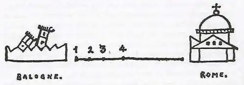 Stendhal describes or compares the “birth of love” in a new relationship as being a process similar or analogous to a trip to Rome. In the analogy the city of Bologna represents indifference and Rome represents perfect love: