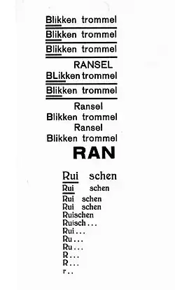 Van Doesburg wrote Dada poetry himself in De Stijl, although under a pseudonym, I.K. Bonset, which was only revealed after his death in 1931. 'Together' with I.K. Bonset, he also published a short-lived Dutch Dada magazine called Mécano (1922–23). Another Dutchman identified by K. Schippers in his study of the movement in the Netherlands[53] was the Groningen typographer H. N. Werkman, who was in touch with van Doesburg and Schwitters while editing his own magazine, The Next Call (1923–6). Two more artists mentioned by Schippers were German-born and eventually settled in the Netherlands. These were Otto van Rees, who had taken part in the liminal exhibitions at the Café Voltaire in Zürich, and Paul Citroen.