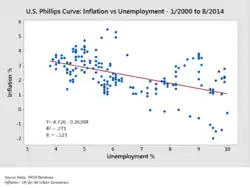 - Correlation: Comparison between observations represented by two variables (X,Y) to determine if they tend to move in the same or opposite directions. For example, plotting unemployment (X) and inflation (Y) for a sample of months. A scatter plot is typically used for this message.[56]