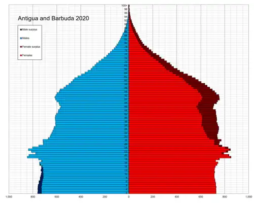 - ↑ "DEMOGRAPHIC PROFILE: ANTIGUA AND BARBUDA" (PDF). Caricomstats.org. Archived from the original (PDF) on 17 October 2016. Retrieved 30 August 2017.