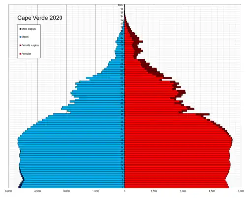 ![]() Population pyramid of Cape Verde in 2020 | |