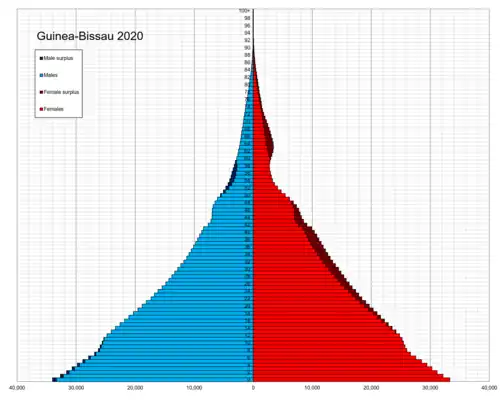 ![]() Population pyramid of Guinea-Bissau in 2020 | |