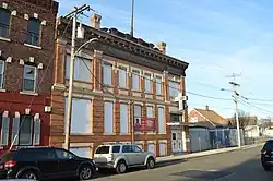 As of the 2010 5-year American Community Survey, there were 565 residents of Italian heritage living in Holyoke, and an estimated 320 according to the 2017 American Community Survey.[39] Italians, having a greater presence toward Springfield, would arrive in Holyoke in the 1880s, with the earliest record of an Italian family being in 1884 when a Charles Marano married a May O'Connor. Many of the city's earliest arrivals would establish confectionery stores and produce markets in business districts along High and Main Streets.[95]: 95 In addition to proprietors, many of these early arrivals included tradesmen such as stone-cutters, carpenters, tailors, and barbers. By 1887, one Louis J. Rigali, a real estate broker, would construct a small Romanesque block on High Street, still extant today.[26]: 164–167