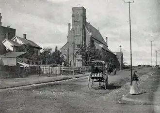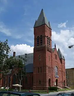 With the growth of the community, many sought to establish a Catholic church in the city which would offer mass in the Polish language. However the Diocese of Springfield did not move to establish such a parish until Rev. A. N. Dynia, a priest from Poland who had been defrocked, had begun to organize such a church there himself.[104][107] Indeed the independent Dynia would continue this pattern going westward, similarly unofficially initiating the creation of other Polish parishes as he went from town to town, only to be shunned by each respective Diocese.[108][109][110] After Dynia was "driven from the city", the Bishop appointed Father H. Chalupka of Chicopee to attend to this would-be parish, and on September 26, 1896, Rev. Anthony M. Sikorski became the first resident priest.[104] In 1901 a building designed by Holyoke's George P. B. Alderman was built and paid for by the parishioners who sold it to the Diocese at a token price, by 1902 the New York Tribune identified their community synonymous with Mater Dolorosa.[110] An influential member of the Polish community in the early 20th century was John Zielinski, who first arrived in Holyoke in 1912 to serve as the organist and choir director of Mater Dolorosa and was subsequently vice-president of the Polish Roman Catholic Union of America at one time, instrumental in the work of adjusting to American culture while keeping traditions of the Old World.[26]: 123, 126 [111][23]