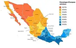 - ↑ "El impacto del mestizaje en México" Archived June 22, 2017, at the Wayback Machine, "Investigación y Ciencia", Spain, October 2013. Retrieved June 1, 2017.