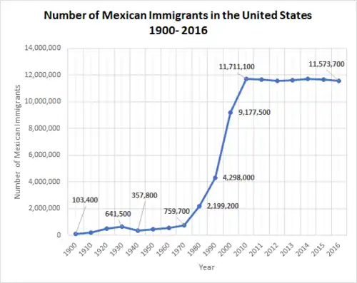 - ↑ Buchenau, Jürgen (2001). "Small Numbers, Great Impact: Mexico and Its Immigrants, 1821–1973". Journal of American Ethnic History. 20 (3): 23–49. doi:10.2307/27502710. JSTOR 27502710. PMID 17605190. S2CID 29111441.