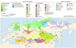- ↑ "Russian Census of 2002". 4.3. Population by nationalities and knowledge of Russian; 4.4. Spreading of knowledge of languages (except Russian). Rosstat. Archived from the original on 19 July 2011. Retrieved 16 January 2008.