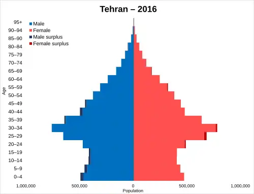 ![]() Population pyramid of the Tehran province in 2016 | |