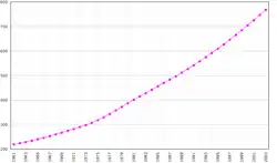 | 1970–1975 | 12 000 | 4 000 | 8 000 | 46.8 | 16.9 | 29.8 | 7.05 | 127 |