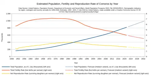 - ↑ "Comoros population statistics". GeoHive. Archived from the original on 10 June 2011.