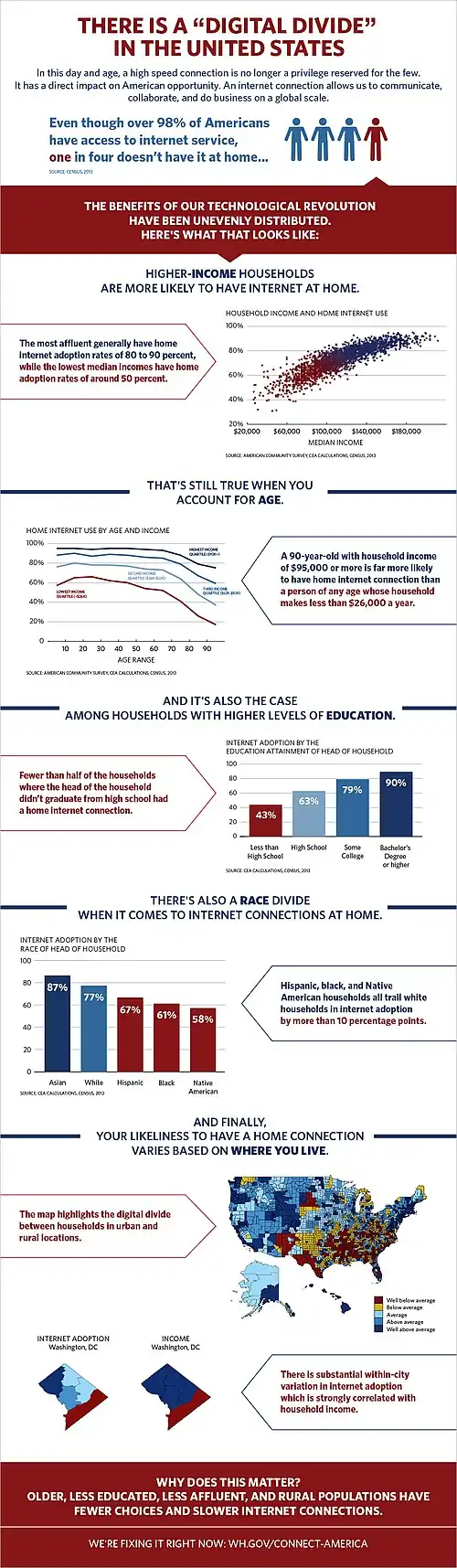 - 1 2 Winslow, Joyce. “America's Digital Divide.” The Pew Charitable Trusts, 26 July 2019, https://www.pewtrusts.org/en/trust/archive/summer-2019/americas-digital-divide.