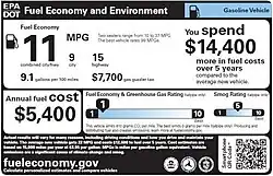 - ↑ Environmental Protection Agency and Department of Vehicles “Features of Fuel Economy and Environment Label ”