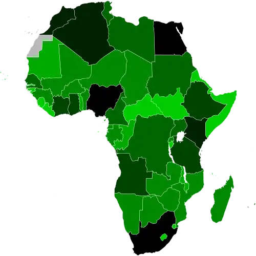 In March 2013, Africa was identified as the world's poorest inhabited continent; however, the World Bank expects that most African countries will reach "middle income" status (defined as at least US$1,025 per person a year) by 2025 if current growth rates continue.[24] There are a number of reasons for Africa's poor economy: historically, even though Africa had a number of empires trading with many parts of the world, many people lived in rural societies; in addition, European colonization and the later Cold War created political, economic and social instability.[25]