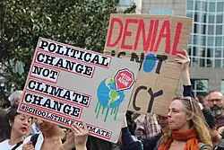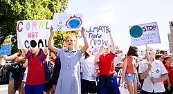 The 2000s Australian drought made climate change a more prominent issue at the turn of the century.[17] A Newspoll released prior to the 2007 federal election found that the environment was the fourth most important issue to voters behind Medicare, education and the economy.[18] At the grassroots level, Extinction Rebellion and School Strike for Climate were both active in Australia from the 2010s.[19] Between 2010 and 2019, Australian environmental groups advertised over 24,000 events on Facebook.[19] Grassroots climate change activism has continued into the 2020s with groups such as Rising Tide, Blockade Australia, and Disrupt Burrup Hub continuing to use disruptive tactics to challenge projects, gain media coverage, and recruit people to the movement.[20][21]