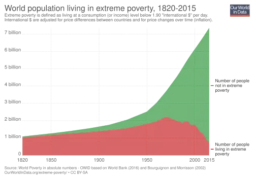 More recent analyses in 2022 on real wages have questioned whether extreme poverty was a "natural" condition of humanity and decreased with the rise of capitalism.[37]