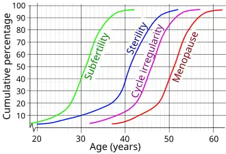 - 1 2 3 te Velde ER, Pearson PL (2002). "The variability of female reproductive ageing". Human Reproduction Update. 8 (2): 141–54. doi:10.1093/humupd/8.2.141. PMID 12099629.