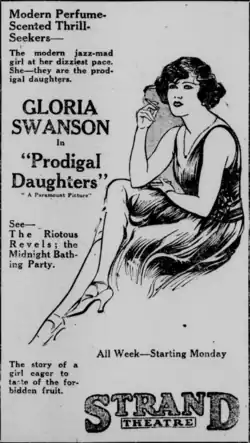 There were two more slang terms that reflected flappers' behaviors or lifestyles, which were "treating" and "charity girls". In the social context of dating, treating was the practice of providing companionship and intimate activity in exchange for entertainment outings, gifts, and other items of monetary value.[80] The activity was prevalent in the large urban areas of the United States from the 1890s to the 1940s and was most commonly engaged in by young working-class women. As treating became more widespread, the activity acquired the label "charity," and the young women who engaged in the more risqué aspects of the practice were often called charity girls.[81]