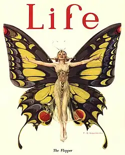 - ↑ "Flappers – Fashion, Costume, and Culture: Clothing, Headwear, Body Decorations, and Footwear through the Ages". www.fashionencyclopedia.com. Retrieved November 3, 2015.