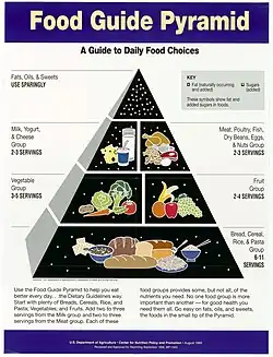 - ↑ "The Food Guide Pyramid" (PDF). USDA's Center for Nutrition Policy and Promotion. Archived from the original (PDF) on August 24, 2014. Retrieved August 14, 2014.