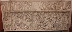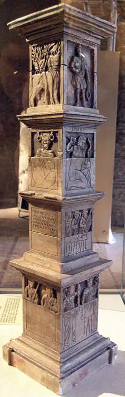 Model reconstructing the Pillar of the Boatmen in the Musée de Cluny, an example of synthesis between Celtic and Roman art
