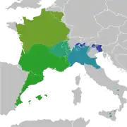 The Vulgar Latin in the region of Gallia took on a distinctly local character, some of which is attested in graffiti,[19] which evolved into the Gallo-Romance dialects which include French and its closest relatives. The influence of substrate languages may be seen in graffiti showing sound changes that matched changes that had occurred earlier in the indigenous languages, especially Gaulish.[19] The Vulgar Latin in the North of Gaul evolved into the langues d'oïl and Franco-Provencal, and the dialects in the South evolved into the modern Occitan and Catalan tongues. Other languages held to be Gallo-Romance include the Gallo-Italic languages and the Rhaeto-Romance languages. Latin epigraphy in Gaul has peculiarities such as the occasional variant instead of H.[20]
