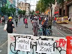- ↑ Burns, Chase; Smith, Rich; Keimig, Jasmyne (June 9, 2020). "The Dawn of 'Free Capitol Hill'". The Stranger. Archived from the original on June 11, 2020. Retrieved June 11, 2020.