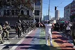 Major protests reemerged in opposition to the deployment of federal law enforcement in the city by the Trump administration.[8] Additional actions occurred on July 19,[9] July 22,[10] and again on July 25, when several businesses were vandalized and five construction trailers were set on fire at a youth jail.[11][8][12]