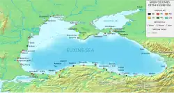 Although the Greeks had at one point called the Black Sea shore "inhospitable", according to ancient sources they eventually created 70 to 90 colonies.[42] The colonisation of the Black Sea was led by the Megarans and some of the Ionian cities such as Miletus, Phocaea and Teos. The majority of colonies in the region of the Black Sea and Propontis were founded in the 7th century BC.