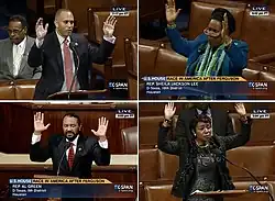 Other members of the Congressional Black Caucus joining Jeffries were Reps. Yvette Clarke (D-New York), Al Green (D-Texas) and Sheila Jackson Lee (D-Texas), who praised the football players who made the gesture the night before.[39]