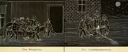 The "Scenes of Hazing", as portrayed in an early student yearbook of the Massachusetts Agricultural College. c.1879.